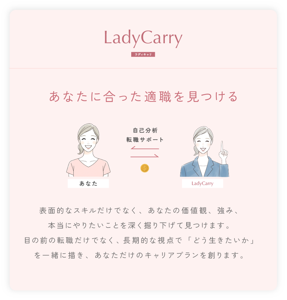 LadyCarryは「適職」を見つけて自分らしく輝けるようになる女性向けのキャリアコーチング!
