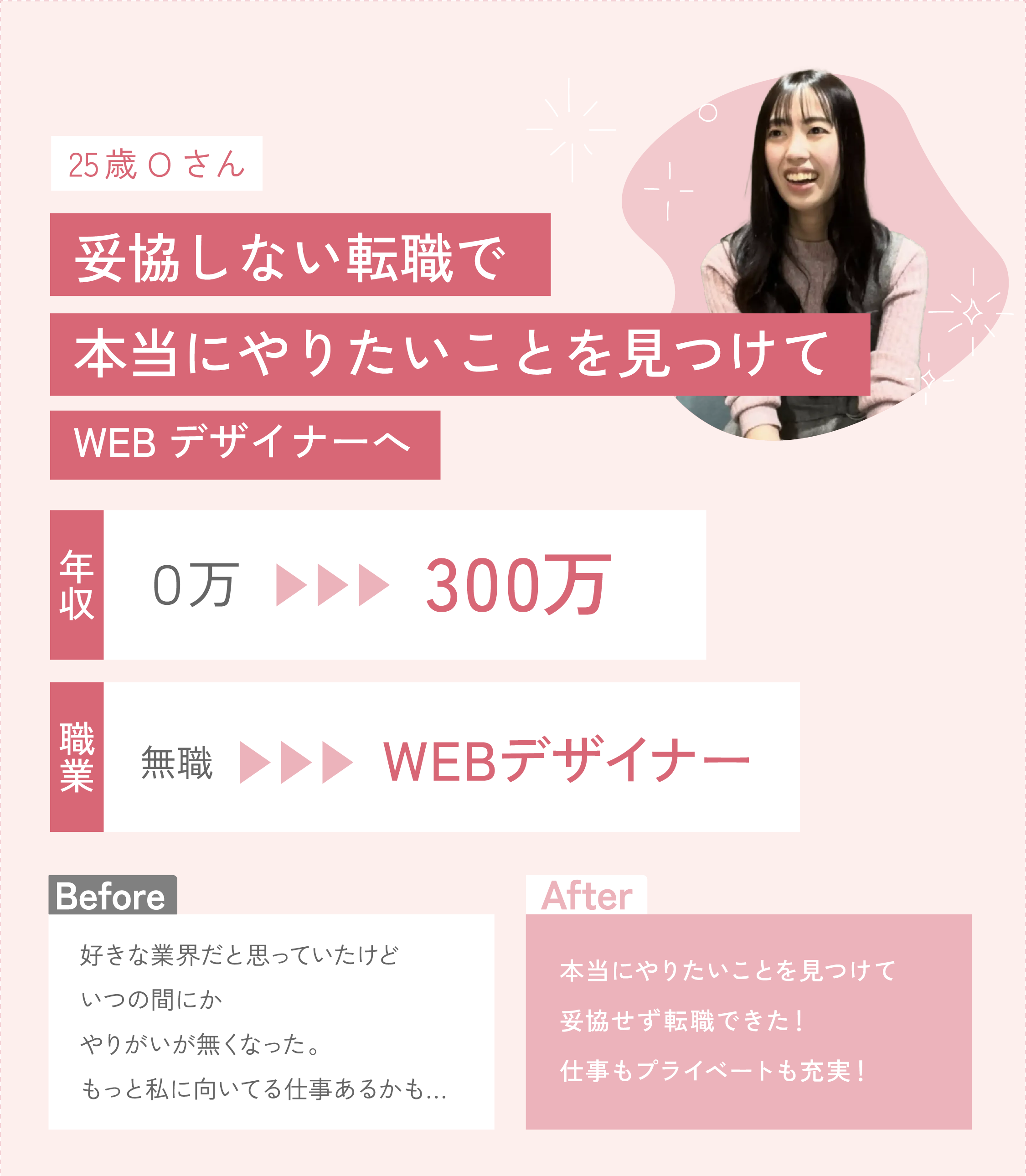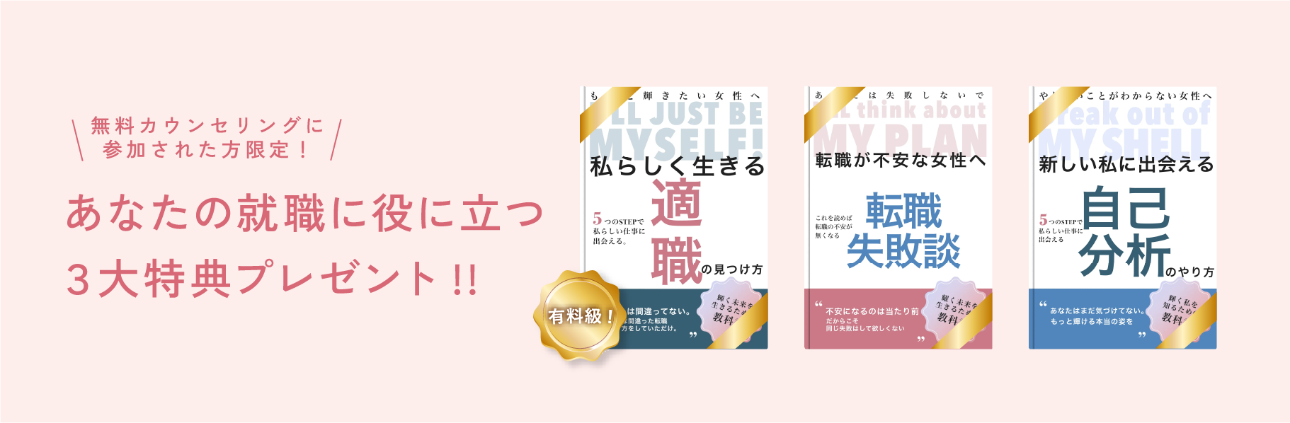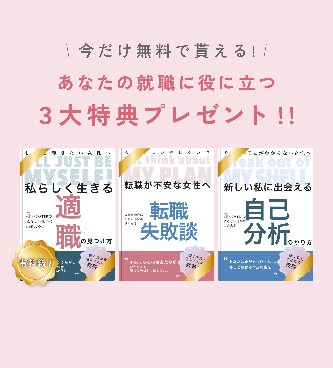 | オススメの方 | ♦転職することを決めている ♦自分にあった仕事を見つけたい ♦ノウハウがわかれば自分で行動したい ♦理想を実現するためのサポートがほしい ♦面接で自分をアピールできる自信がない |
