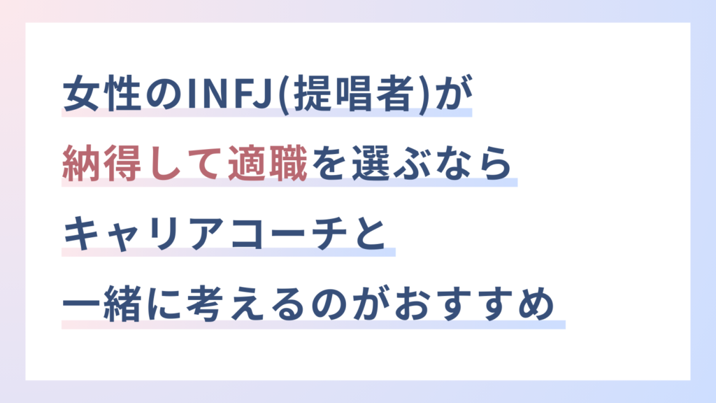 まとめ:女性のINFJ(提唱者)が納得して適職を選ぶなら、キャリアコーチと一緒に考えるのがおすすめ