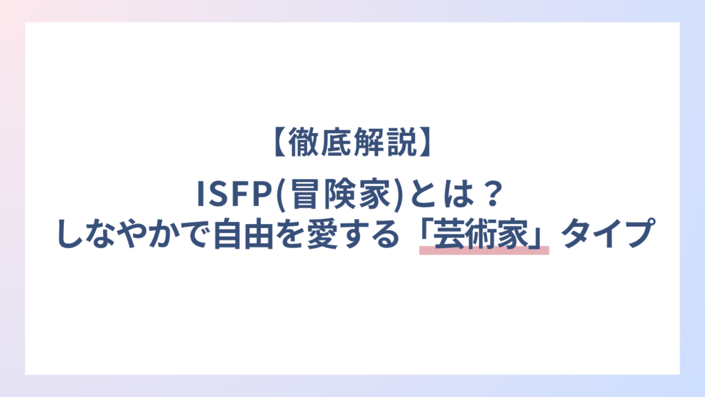 ISFP(冒険家)は、MBTI性格診断の中で最も芸術的で感受性豊かなタイプです。枠にとらわれない柔軟な思考を持ち、あらゆる変化を静かに受け入れるしなやかさが特徴です。