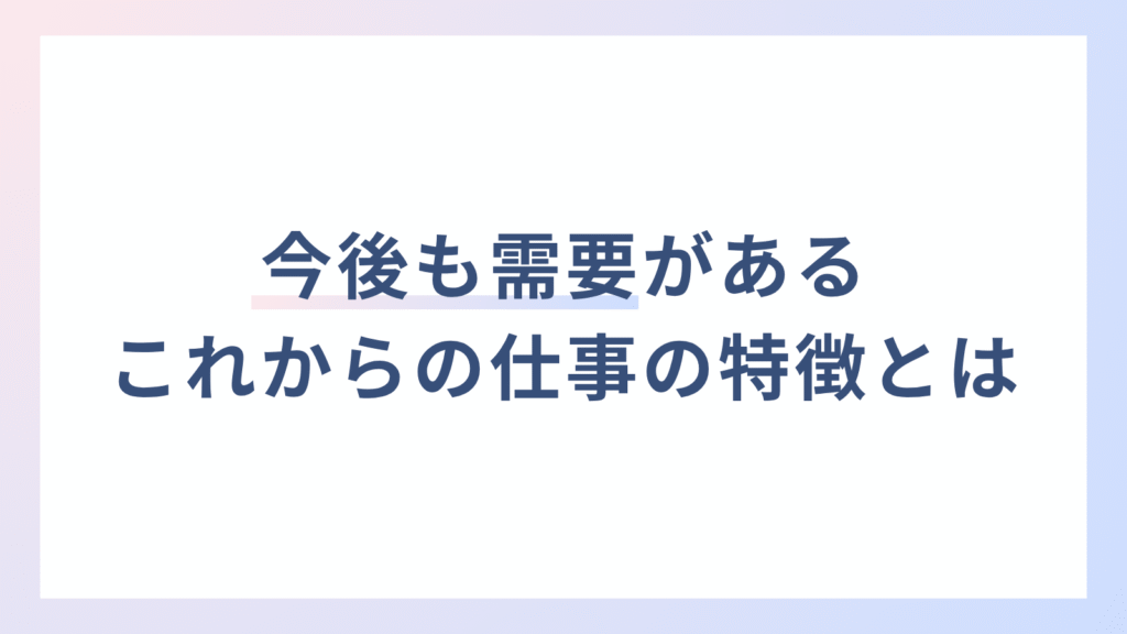 AIや機械に代替されにくい仕事は、時代の変化に左右されず、自分のスキルや人間力を活かせるため、これからの仕事として、需要があります。